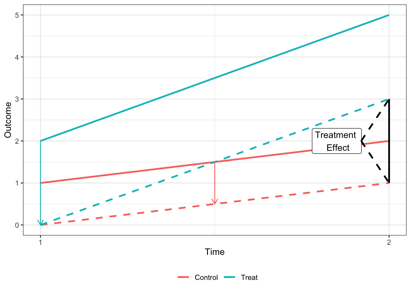 y.out = 1.5 + 3 * d + 1.5 * t + 6 * d * t + rnorm(N * 2, 0, 1)