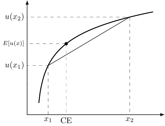 - Calculate value of wealth that gives you \(u=E[U(w)]\) (based on the utility function).