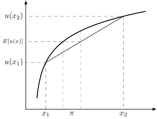 Consider the utility function, \(u(w)=\ln(w)\). An individual starts with a wealth of $100,000. With probability 0.25, this person will get sick and incur a cost of $20,000.